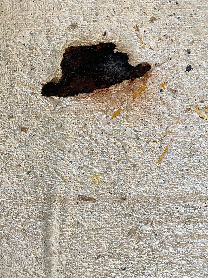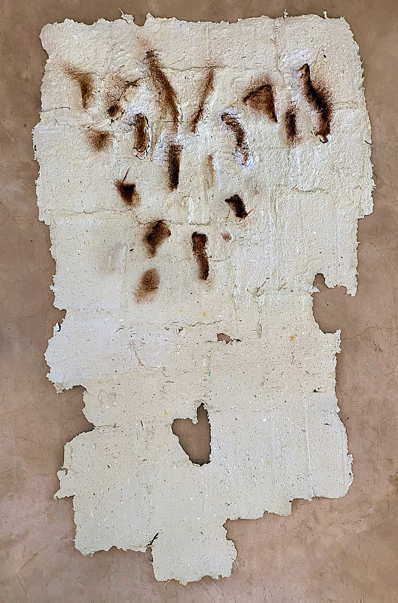 Paper pulp collage and Eucalyptus bark