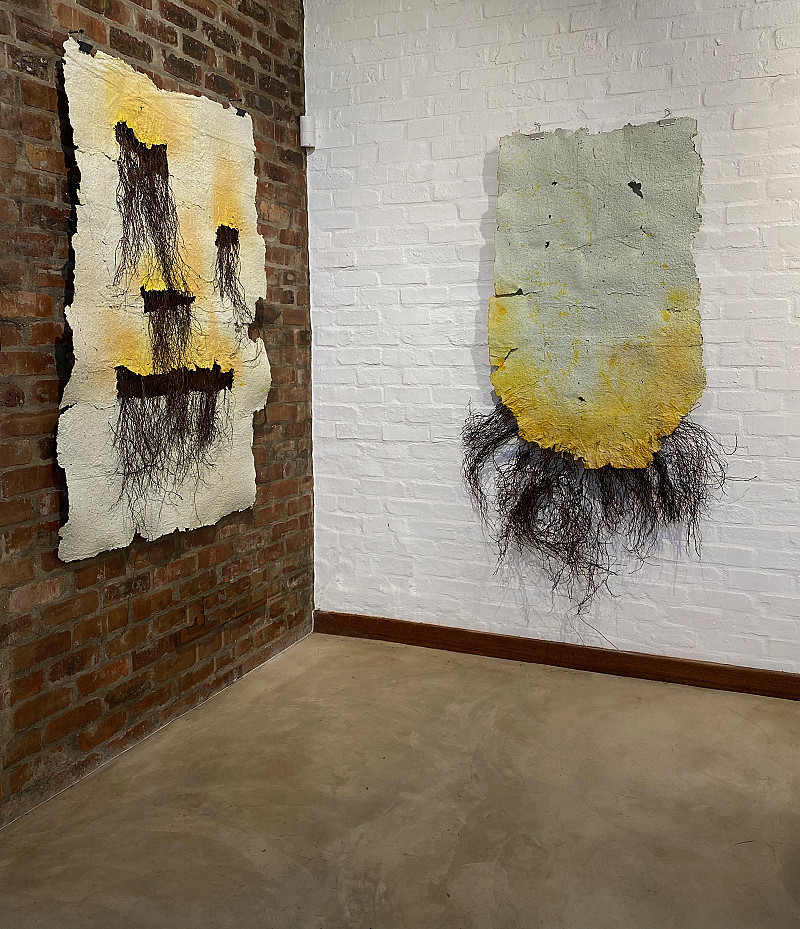 , , Paper pulp collage and air roots from a Ficus tree